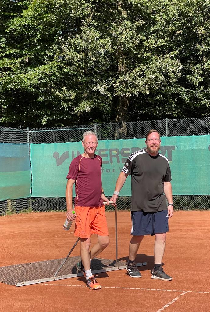 Am vergangenen Samstag (23. September 2023) fanden die diesjährigen Endspiele der Vereins­meisterschaften auf der schönen Tennisanlage des SV Dickenbergs statt. Bei eher bewölkten Wetter begannen die hoch motivierten Finalisten/innen ihre Spiele. Um Punkt 11 Uhr starteten bereits zwei spannende Matches gleichzeitig. Bei den Herren Ü55 spielten Rainer Baar und Karl-Heinz Märte um den Titel Gewinner der Vereinsmeisterschaften 2023 Herren Ü55. In einem spannenden Duell konnte sich am Ende Rainer Baar durchgesetzt. Gleichzeitig spielten Frank Nagel und Dirk Freudenthal um den Titel Gewinner der Vereinsmeisterschaften 2023 bei der Herren Runde B. Nach einem spann­enden, schön anzuguckenden Spiel heißt der Sieger bei der Herren Runde B Dirk Freudenthal. Nun waren die Damen an der Reihe. In diesem Jahr gab es bei den Damen ein Schwesternduell. Meike Heuing und Verena Scholz spielten um den Titel Gewinnerin der Vereinsmeisterschaften 2023 bei den Damen. Nach einem interessanten Spiel heißt die diesjährige Gewinnerin Meike Heuing. Das Finale Damen Doppel wurde bereits vorher ausgespielt. Im Finale standen sich gegenüber Silke Speckemeyer/Gabriele Wöstmann und Meike Heuing/Verena Scholz. Hier setzt sich das Schwestern­duo durch. Der Sieg wurde schon gestern gefeiert, wo es hieß, dass Meike Heuing Trippelvereins­meisterin geworden ist (Einzel Damen, Doppel Damen mit Verena Scholz und Mixed mit Daniel Mentrup). Nach einer Verschnaufpause für Rainer Baar und Dirk Freudenthal hieß es auf in die zweite Runde zum Finale der Herren Doppel. Hier spielten Rainer Baar/Karl-Heinz Märte und Dirk Freundenthal/Daniel Mentrup um den Pokal. Nach einem spannenden Dreisatz-Match heißen die Sieger beim Doppel Herren Daniel Mentrup und Dirk Freudenthal. Für Daniel Mentrup hieß es kurze Verschnaufpause und Kräfte sammeln bevor es in das Endspiel der Herren im Einzel geht. Hier setzte sich in einem großartigen Finale Michael Helmer gegen Daniel Mentrup durch.