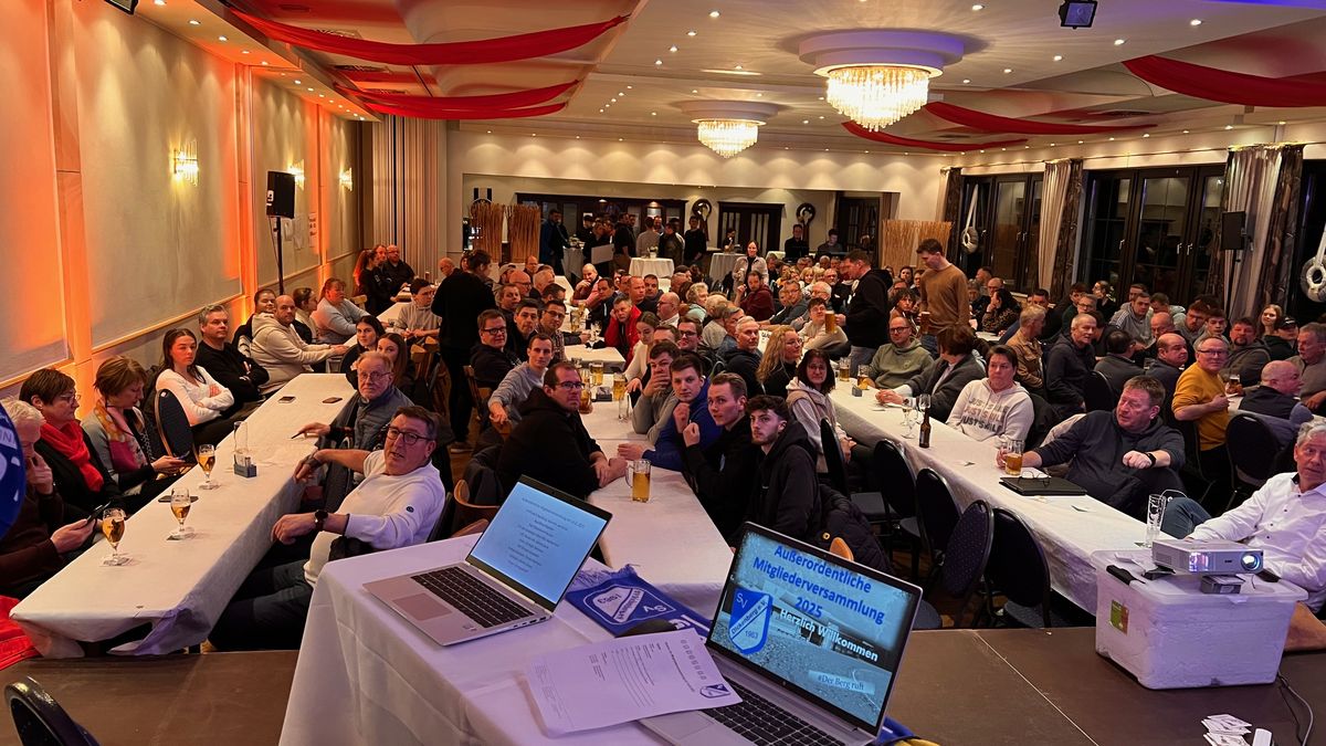 Die Mitglieder des SV Dickenberg stehen mehr denn je zusammen. Dies zeigte sich insbesondere am Freitag (14.02.25) bei der außerordentlichen Mitgliederversammlung. Die Vorstellung des Neubaus erzeugte großes Interesse bei den Mitgliedern. Rund 160 fanden den Weg zur Versammlung ins Vereinslokal Gasthaus Antrup. Auch etliche Gäste verfolgten die Vorstellung der Neubaupläne. So zum Beispiel Brigitte Janz von der Stadt Ibbenbüren, oder Thomas Bohlmann vom Stadtsportverband. Aus dem Ibbenbürener Stadtrat waren Vertreter der SPD, CDU, der FDP und der Grünen anwesend.