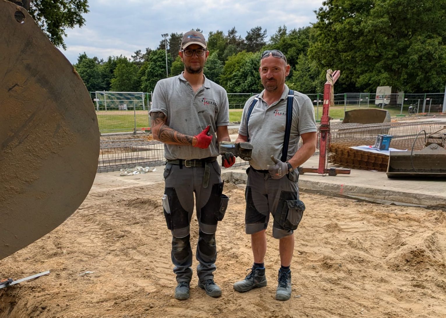 Ramon Ottens und Kamil Kopaczek, Mitarbeiter der Baufirma Bischoff, machten bei den Arbeiten für die neuen Fundamente, einen bemerkenswerten Fund. Unserem Vereinsmitglied Markus Lange ist im Jahre 1998 ein Portmonee während eines Fußballspiels abhanden gekommen. Nun, 27 Jahre später, entdeckten die Mitarbeiter die Geldbörse bei den Arbeiten. 2,20 Mark waren noch im Portmonee und außerdem einige Papiere, wie z.B. Gesundheitskarte und Personalausweis. Geldscheine, die sich seinerzeit im Portmonee befanden, waren allerdings nicht mehr vorhanden. Ebenso wenig sein Verlobungsring, den er ebenfalls während des Sports darin aufbewahrte. Doch es kam noch besser! Zwei Tage später entdeckten die Mitarbeiter tatsächlich auch noch den Ring. Was für eine unglaubliche Geschichte und doch können wir noch einen obendrauf setzen. Inzwischen wurde bekannt, dass einer der Finder, Ramon Ottens, am 07. Juli diesen Jahres heiratet. Und wie lautet der Hochzeitstag von Markus Lange? Genau, 07. Juli.....