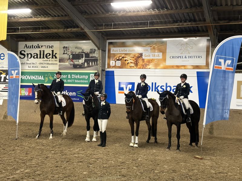 Beim Frühjahrsturnier in Ibbenbüren hat die Reitabteilung besonders in den Mannschaftsprüfungen geglänzt. Für die Dressurreiter gibt es in diesem Jahr erstmals den Volksbank-Dressurpokal, die erste Wertungsprüfung, eine A*-Dressur für Mannschaften, bestehend aus vier Reitern, fand in Ibbenbüren statt.