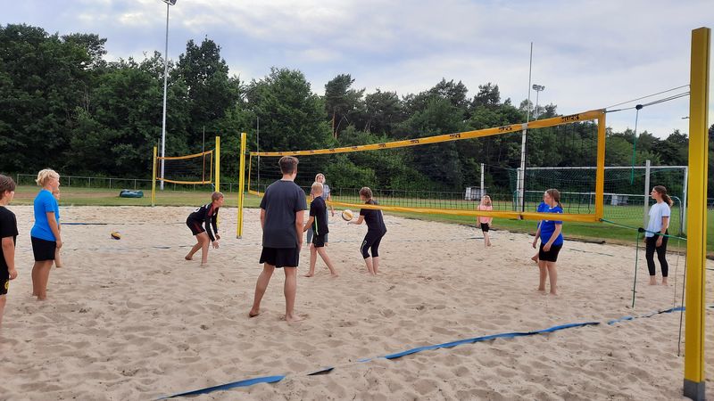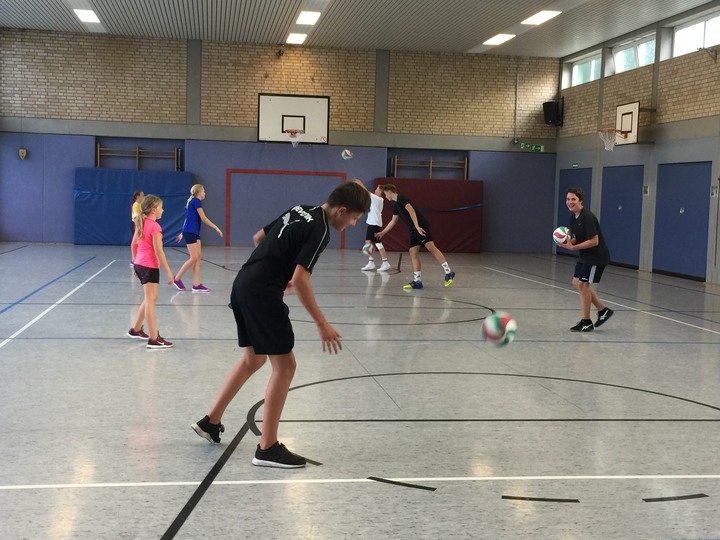 In der Barbarahalle versammelt sich jeden Mittwoch eine lebhafte Gruppe von 8 Jungen und Mädchen im Alter von 10 bis 14 Jahren, um gemeinsam Volleyball zu spielen. Unter der fachkundigen Anleitung von Trainerin Nina Hollensteiner und Jana Keuter trainieren sie von 17:00 bis 18:30 Uhr. Neue Gesichter sind gern gesehen und herzlich eingeladen nach den Sommerferien vorbeizukommen.