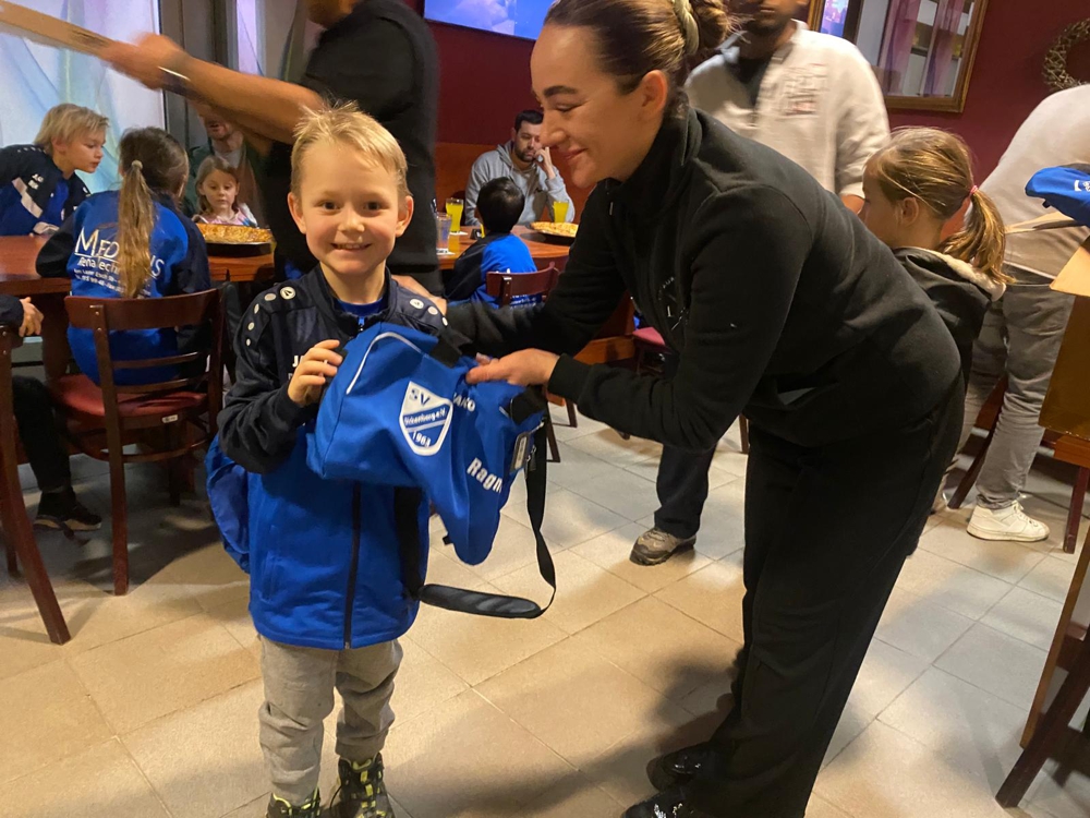 Eine weitere Überraschung gab es von Melina, der Inhaberin des Restaurants Ledigs Anna (Mehr Infos unter www.ledigs-anna.com). Sie brachte für unsere Kids hochwertige Sporttaschen mit. Auch bei ihr haben wir uns mit einem kleinen Präsent für diese großartige Unterstützung bedankt.