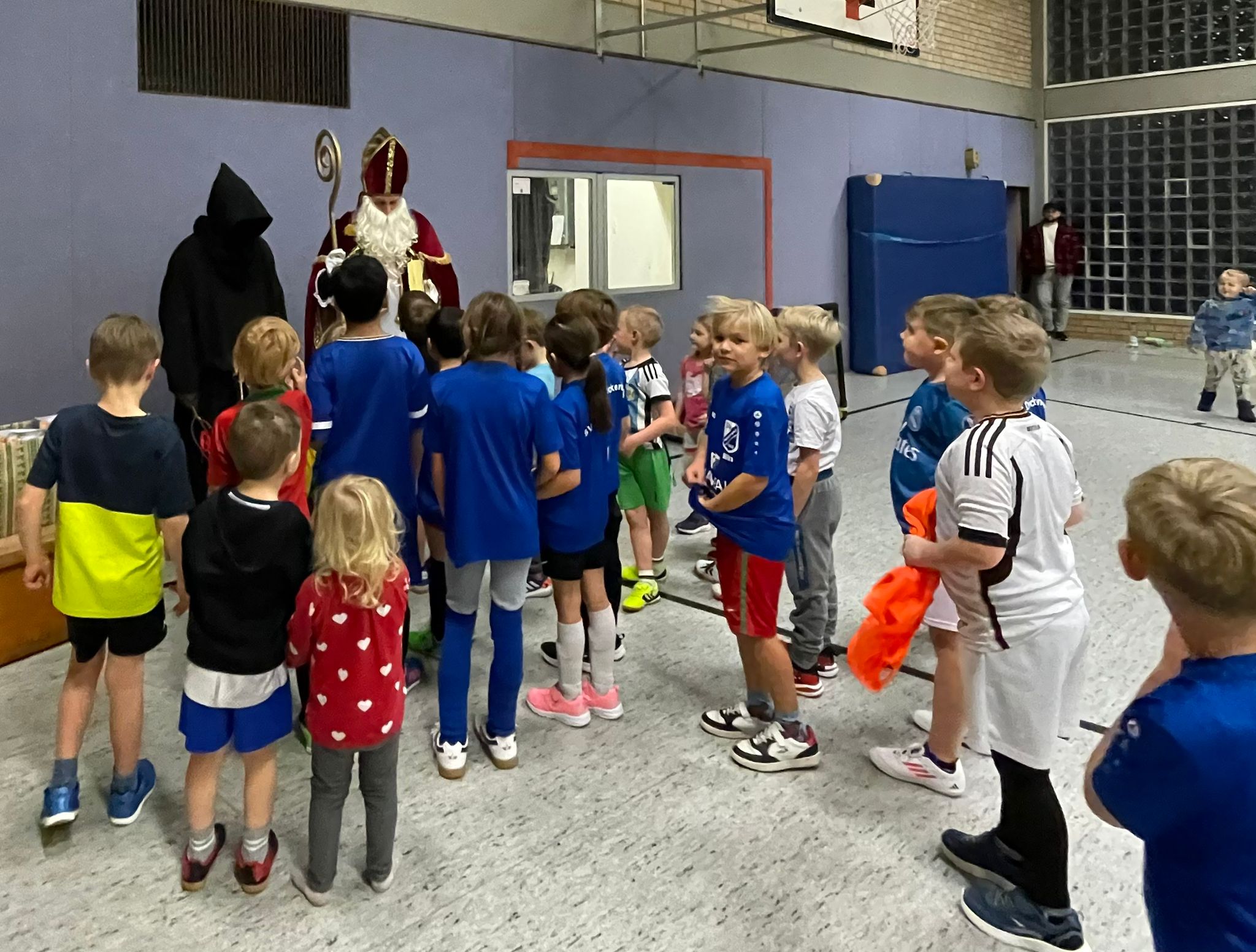 Am Freitag, den 06.12.2024, erlebten die Kinder der G- und F-Jugend des SV Dickenberg ein ganz besonderes Training. Der Nikolaus und Knecht Rupprecht machten Halt in der Barbara-Halle und überraschten die kleinen Fußballerinnen und Fußballer. Mit viel Freude wurde gemeinsam ein Lied gesungen, bevor jedes Kind ein kleines Geschenk erhielt. Die Begeisterung war groß, und alle Kinder freuten sich über den besonderen Besuch.